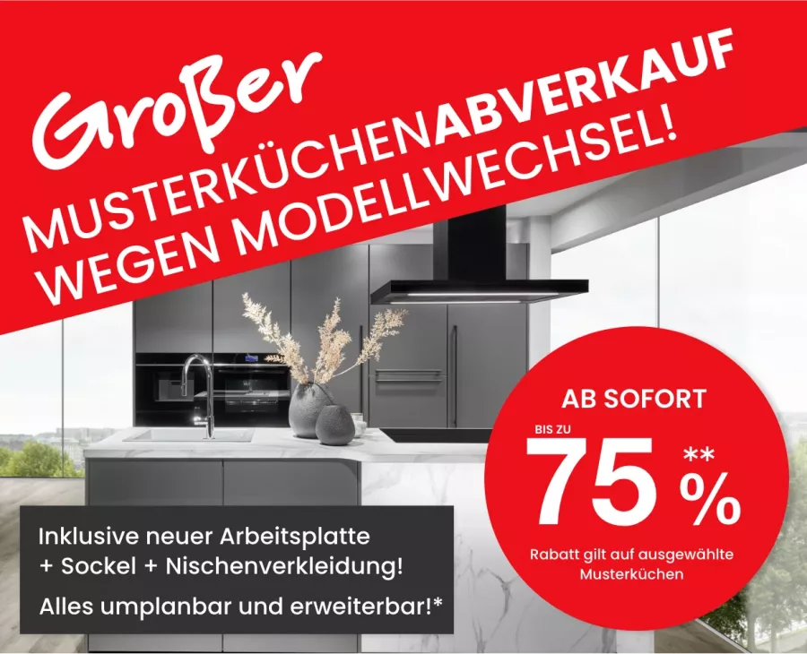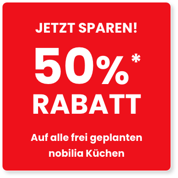 Jetzt ist der ideale Moment, um sich Ihre Traumküche zu sichern! Nutzen Sie unser einmaliges Angebot: 50 % Rabatt* auf alle freigeplanten Nobilia-Küchen. Egal ob modern, klassisch oder extravagant – unsere erstklassigen Küchen erfüllen alle Ihre Wünsche.